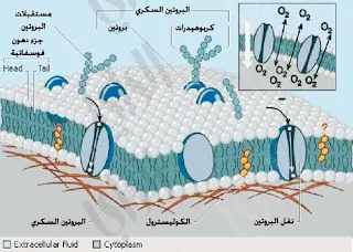 (3) ينطمر بين جزيئات الطبقتين جزيات البروتين بعضها تعمل كمواقع للتعرف على المواد الغذائية و الهرمونات و الاخر يعمل كبوابات لمرور المواد.