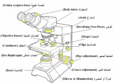 صف أجهزة المجهر الضوئي وما فائدة كل جزء فيها؟